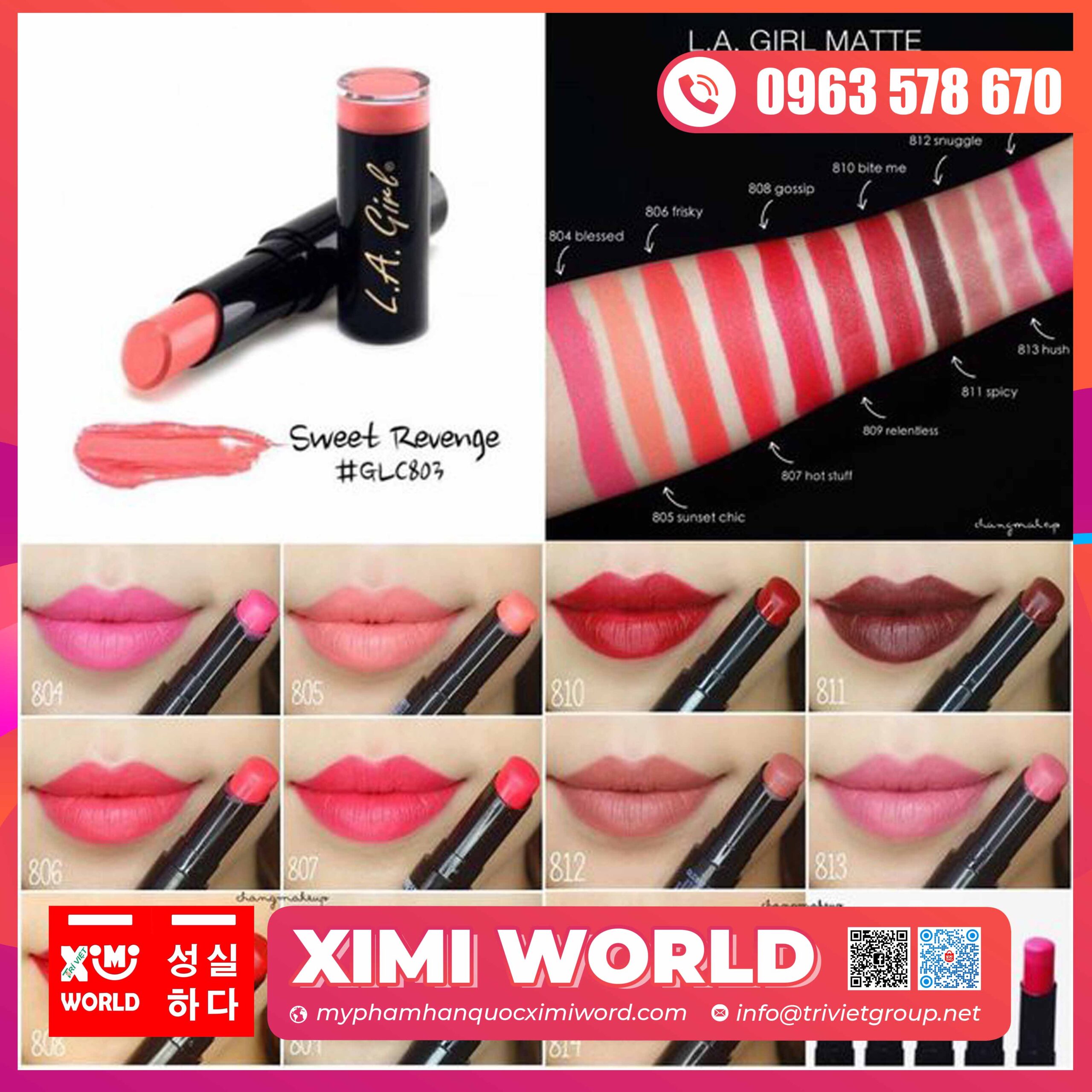 SKU: 081555358037 Danh mục: Mỹ Phẩm, XÁCH TAY MỸ Thẻ: Son, Son L.A GIRLS Matte Flat Velvet Lipstick, XimiSo