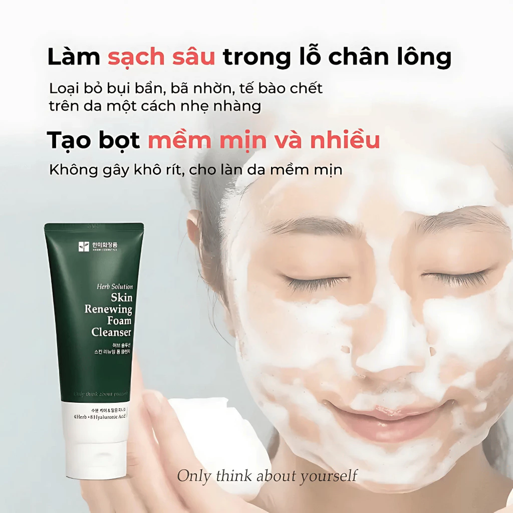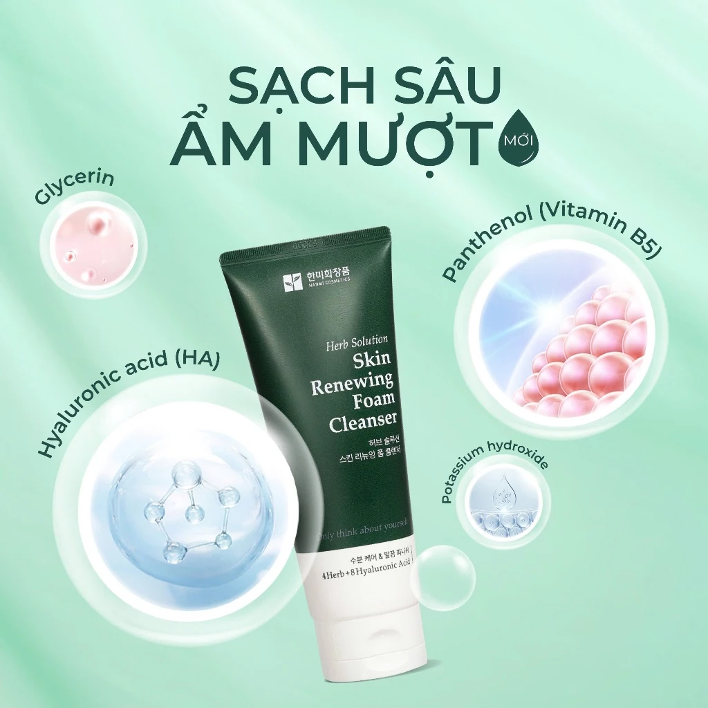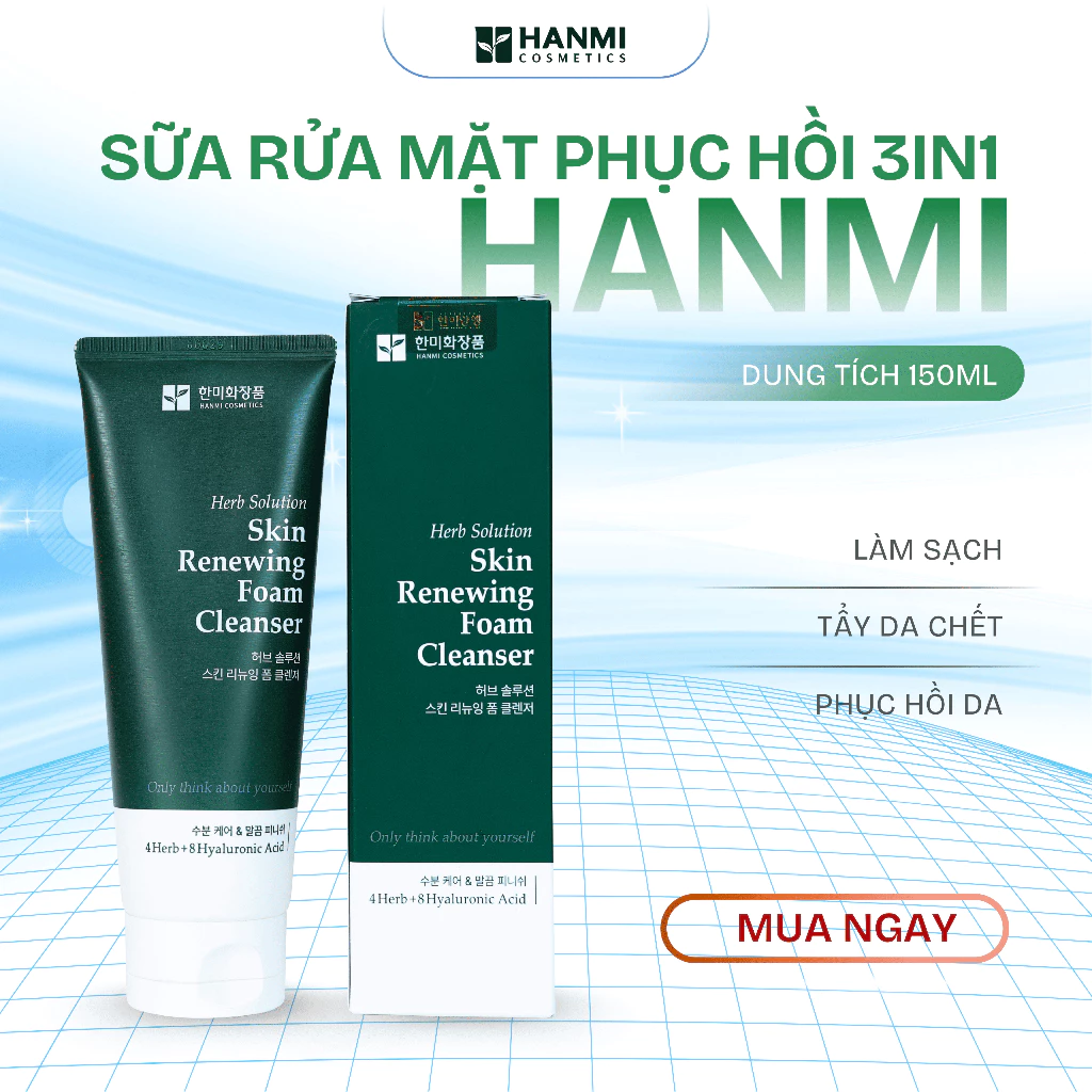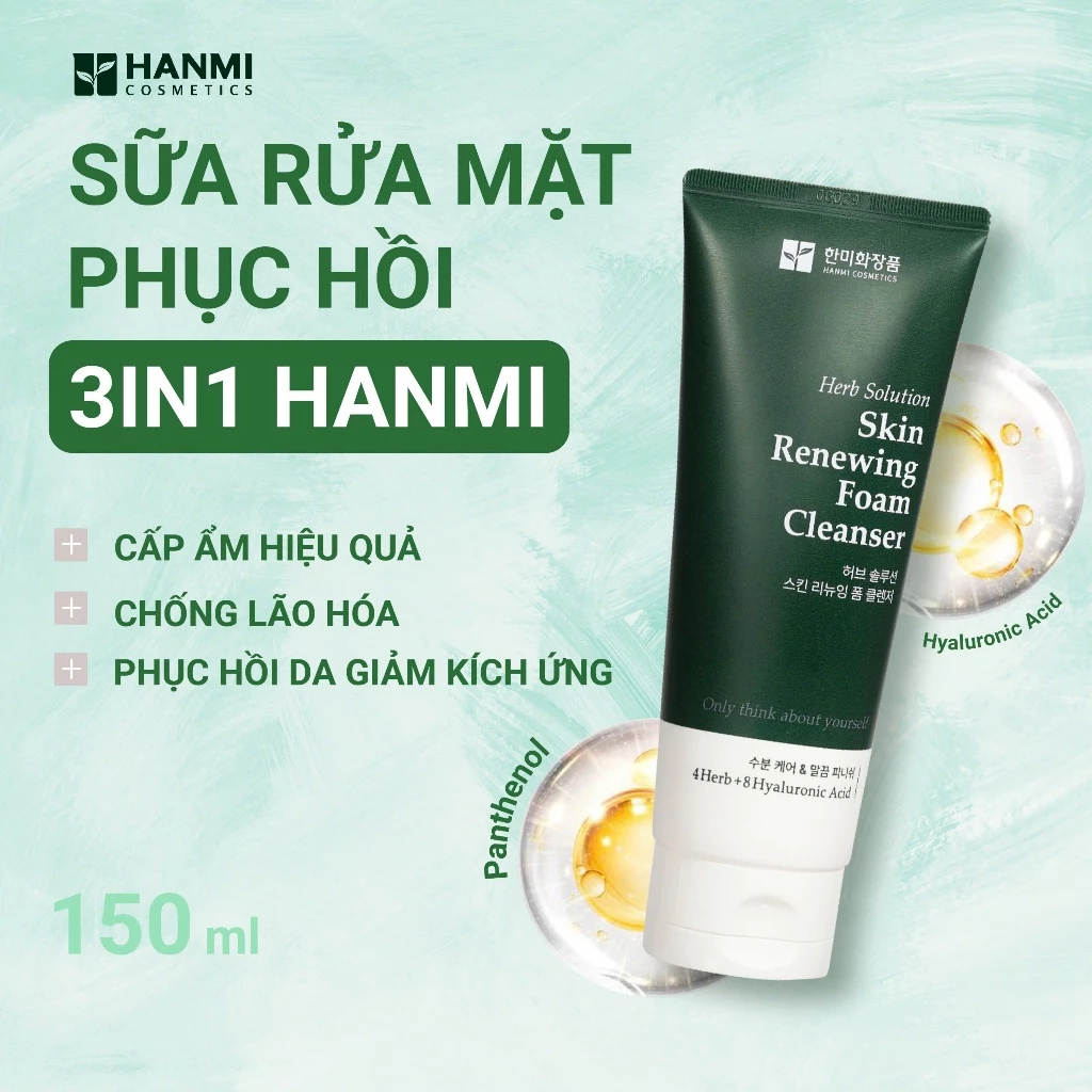 Sữa Rửa Mặt Herb Solution Skin Renewing Foam Cleanser Hanmi 150ml – Làm sạch dịu nhẹ & hỗ trợ tái tạo làn da