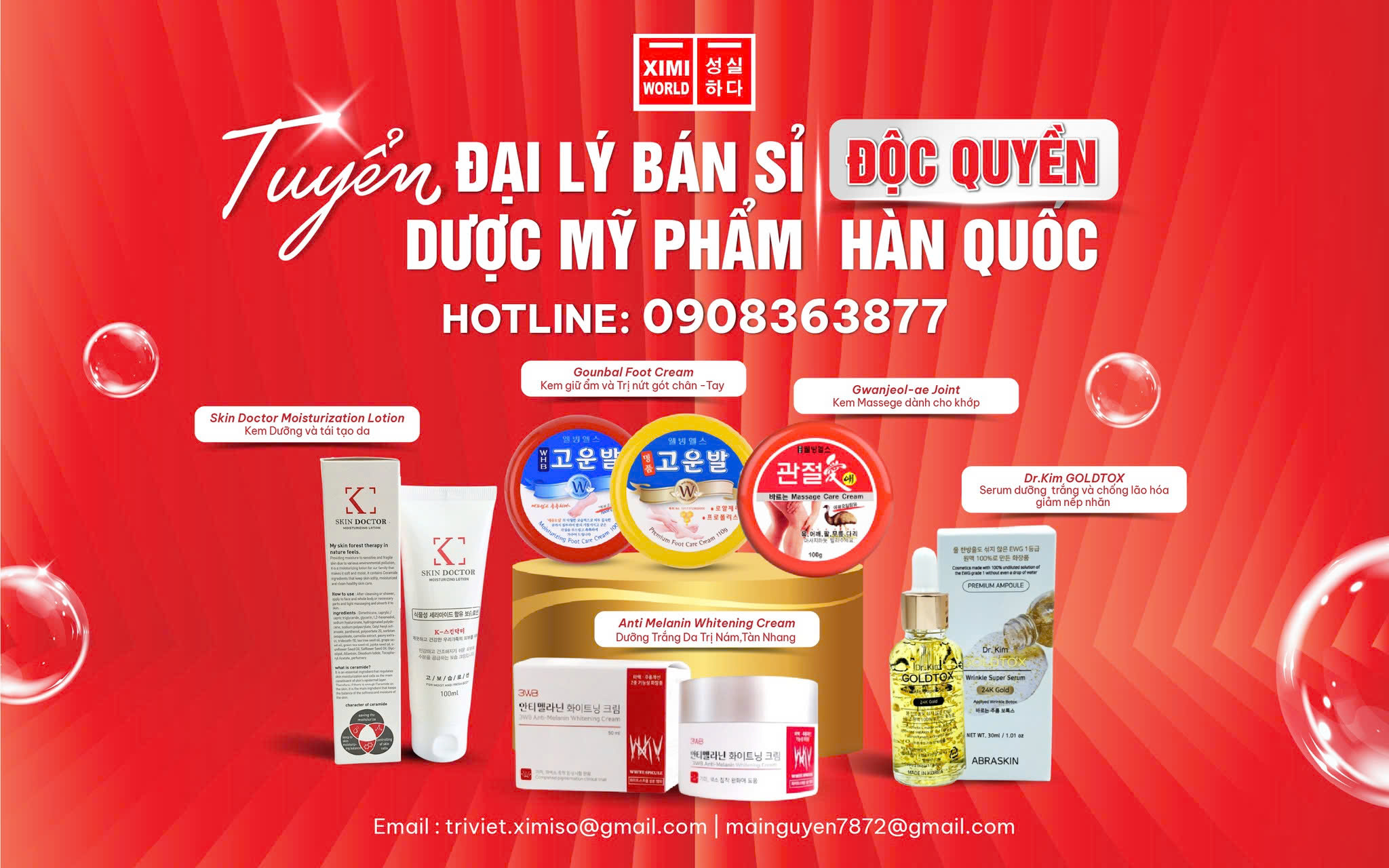 TUYỂN ĐẠI LÝ BÁN SỈ DƯỢC MỸ PHẨM ĐỘC QUYỀN HÀN QUỐC