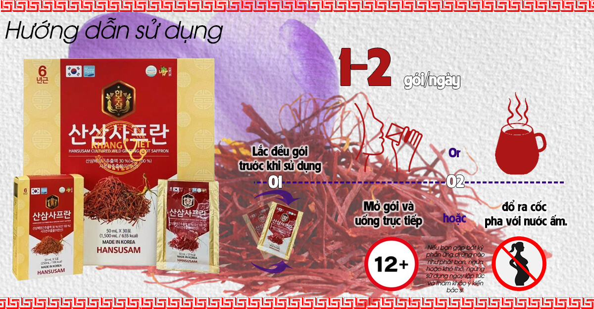 Nước hồng sâm nhụy hoa nghệ tây Hansusam là sản phẩm thảo dược cao cấp kết ...