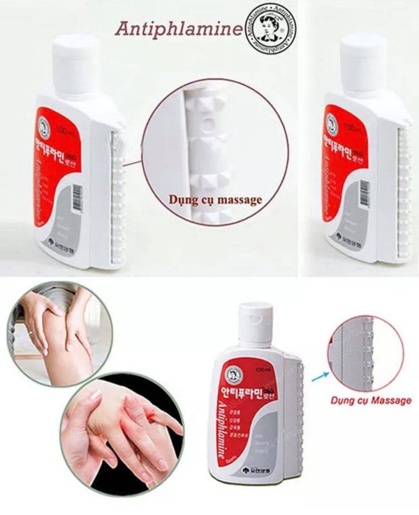 – Antiphlamine dầu xoa bóp Hàn Quốc 100ml được đóng gói trong chai nhựa đồng thời đi kèm theo dụng cụ massage được gắn vào chai, rất thuận tiện khi sử dụng.