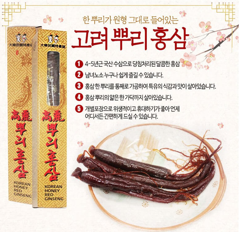 Hồng sâm nguyên củ Hàn Quốc tẩm mật ong 200g