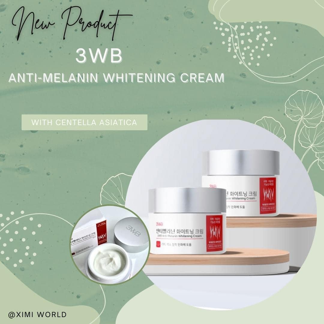 Kem dưỡng trắng da chống melanin 3WB có chứa glutathione, axit tranexamic và a-bisabolol giúp làm trắng da bằng cách ức chế hoạt động của melanin và chứa adenosine là thành phần chức năng chống nhăn. Các gai trắng tự nhiên được hấp thụ di chuyển các chất làm đẹp có chức năng kép (làm trắng và chống nhăn) sâu hơn bên trong da, giúp giảm tàn nhang, sắc tố và nếp nhăn.