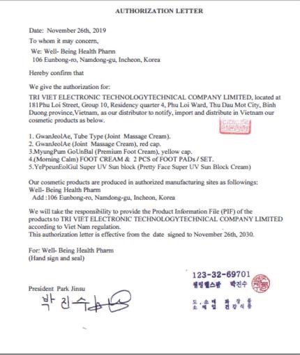 • Giấy chứng nhận lưu hành sản phẩm