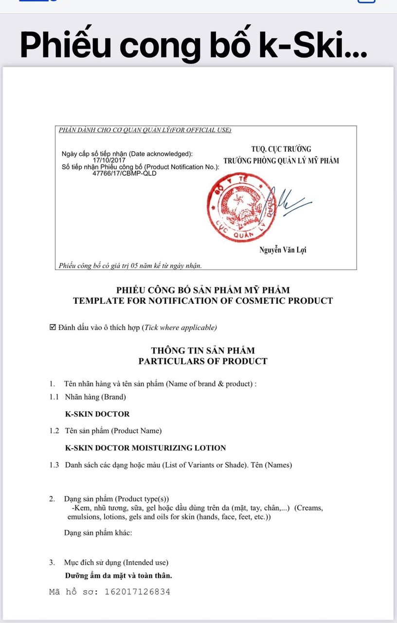 • Phiếu công bố sản phẩm