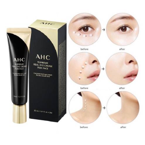 Kem mắt AHC Real Eye Cream For Face phiên bản mới, là sản phẩm chăm sóc vùng mắt bán chạy nhất tại Hàn Quốc. Ngoài vùng da mắt các bạn có thể sử dụng em này để cải thiện nếp nhăn cho vùng khoé mũi, khoé miệng, có thể dùng cho da mặt như kem dưỡng. Điều đặc biệt làm nên sự thành công của hãng là tính chuyên nghiệp, chất lượng đi cùng với hiệu quả. Phiên bản kem mắt lần này của AHC được thiết kế quá đẹp và sang chảnh. Bên cạnh đó chất lượng cũng được nâng lên đáng kể.