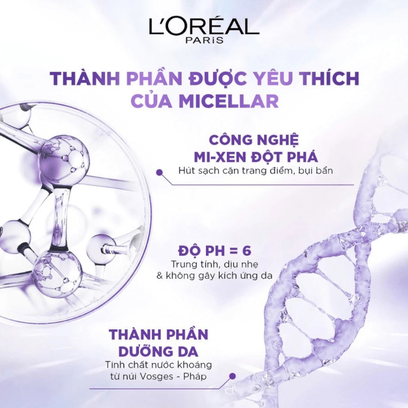 Nước tẩy trang Loreal Micellar Water dưỡng ẩm cho da thường khô