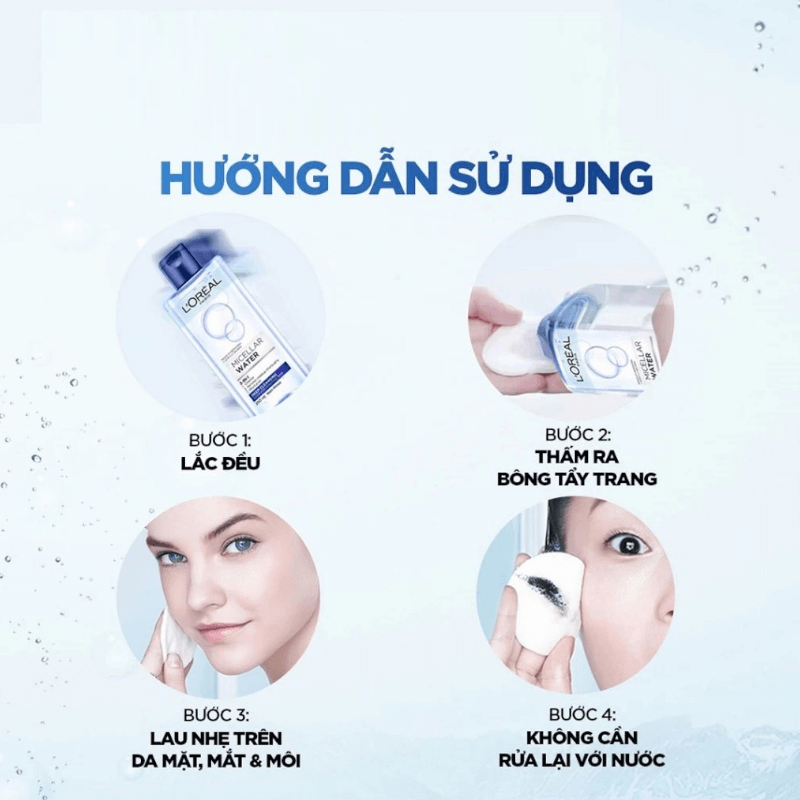Để sử dụng sản phẩm Nước Tẩy Trang Loreal Màu Tím Revitalift Hyaluronic Acid Micellar Water hiệu quả bạn có thể tham khảo các cách dùng dưới đây: