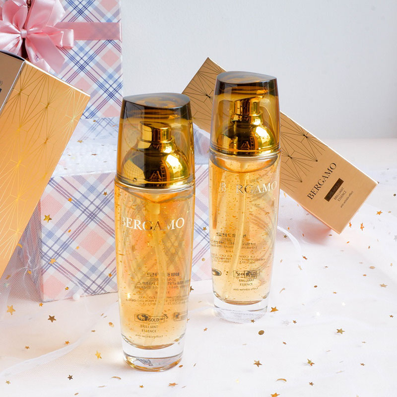 SERUM DƯỠNG DA BERGAMO CHAI 110ML VÀNG TẠI XIMIWORLD Tinh chất serum Bergamo 24K Gold Brilliant Essence có tác dụng phục hồi làn da, chống lão hóa, cải thiện nếp nhăn hiệu quả.Dạng gel lỏng dễ dàng thẩm thấu sâu vào da, giúp hiệu quả dưỡng da tốt nhất. Tinh chất vàng 24K có khả năng chống oxy hóa cao, ngăn ngừa sự xuất hiện của các nếp nhăn, ngăn cản quá trình lão hóa sớm của da. Thành phần từ nhân sâm và trà xanh tăng sức đề kháng, thúc đẩy quá trình sản sinh collagen tự nhiên cho da.