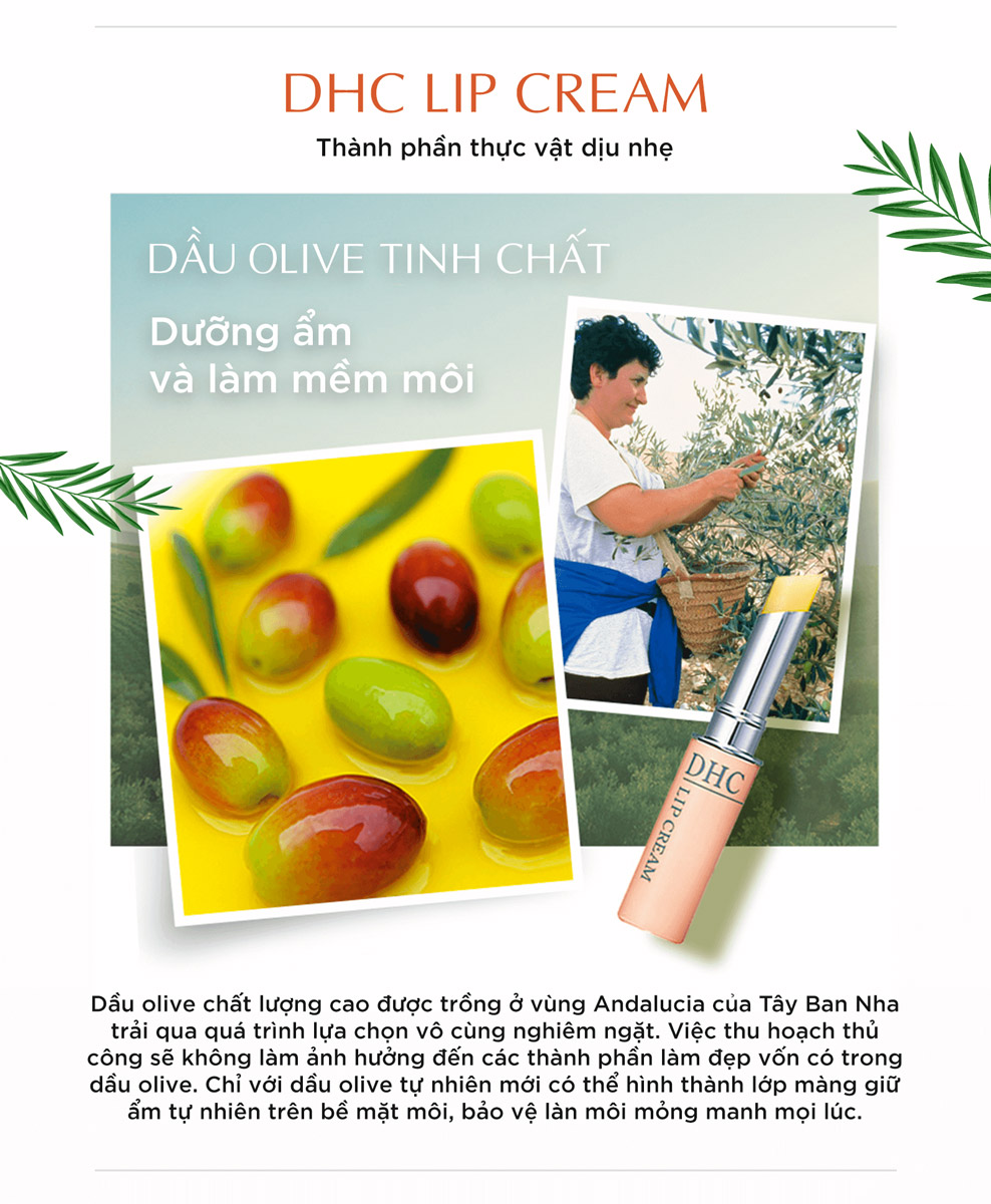 Son Dưỡng DHC Lip Cream là một trong những dòng sản phẩm bán chạy nhất của thương hiệu DHC Nhật Bản. Công thức son chứa chiết xuất từ Olive đậm đặc sẽ giúp dưỡng ẩm và khoá ẩm cho đôi môi lên đến 8 giờ, cải thiện hiệu quả tình trạng da môi khô nứt nẻ, đồng thời giảm thâm và làm hồng môi.