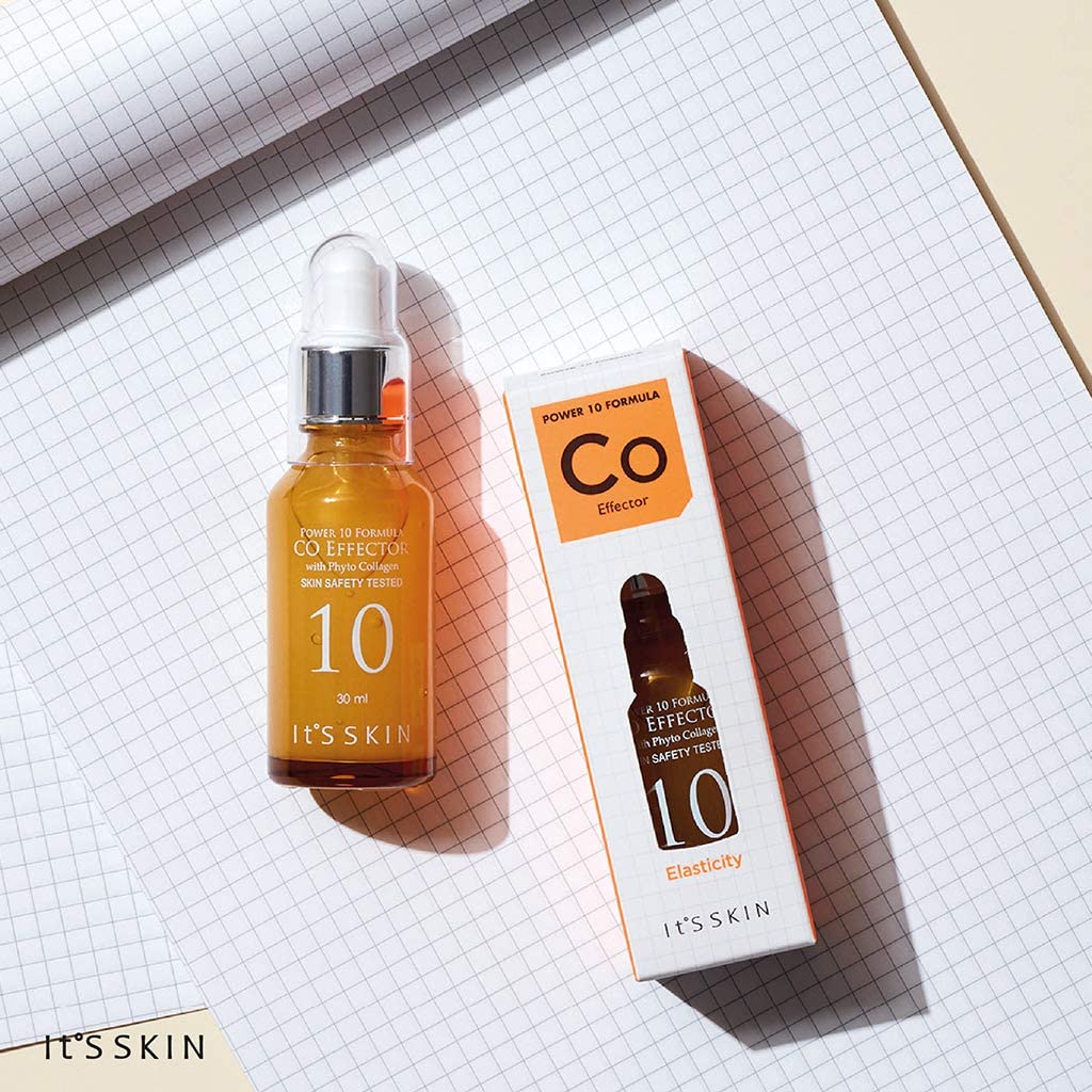 It’S SKIN Power 10 Formula CO Effector là tinh chất được thiết kế cho làn da đã bắt đầu xuất hiện các dấu hiệu lão hóa như nếp nhăn, da kém săn chắc, chảy xệ… Sản phẩm giúp bổ sung hàm lượng Collagen bị thiếu hụt, tăng cường độ đàn hồi và săn chắc của làn da, duy trì làn da rạng rỡ và tươi trẻ. Công thức sản phẩm lỏng nhẹ, thẩm thấu nhanh chóng vào da.