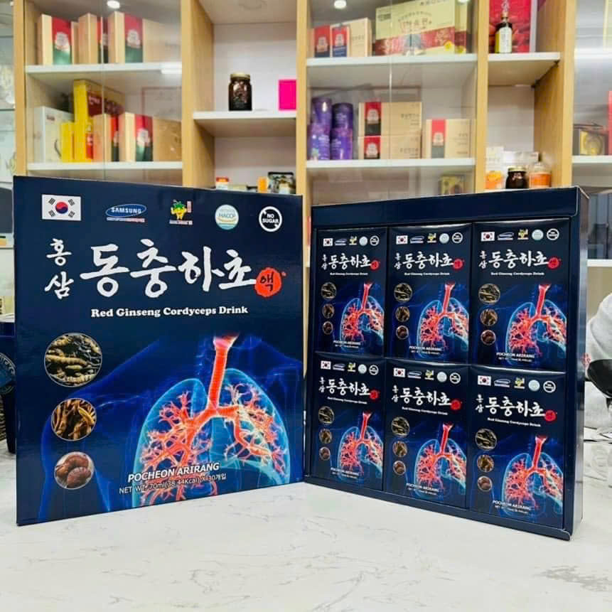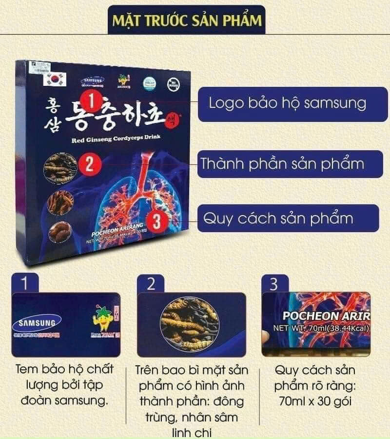 1. Thông tin chi tiết sản phẩm nước hồng sâm đông trùng hạ thảo bổ phổi Pocheon.
