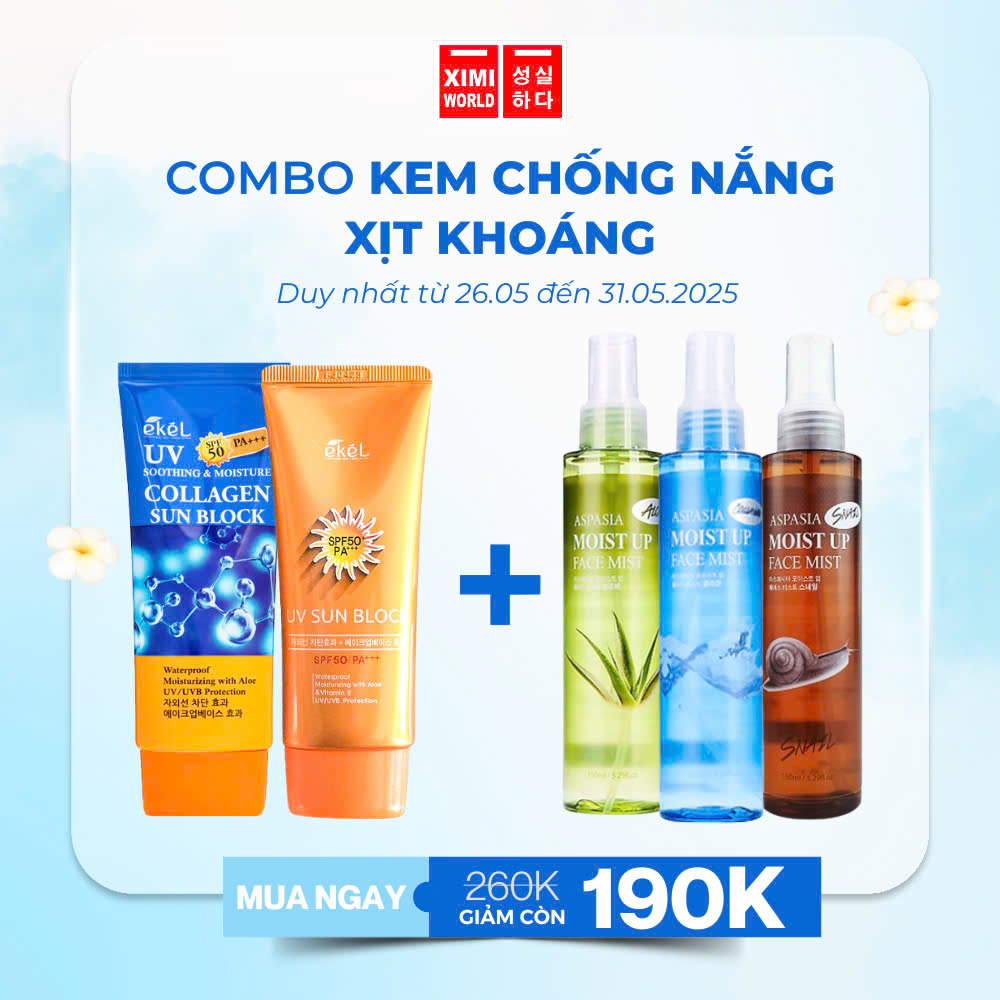 - Combo 1 kem chống nắng + 1 xịt khoáng giá 190k (𝐠𝐢𝐚́ 𝐠𝐨̂́𝐜 𝟐𝟔𝟎𝐤)
